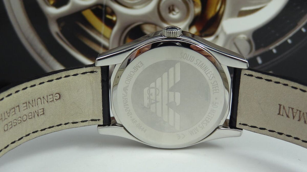 Emporio Armani Velente Black Dial Black Leather Strap Watch For Women - AR0644