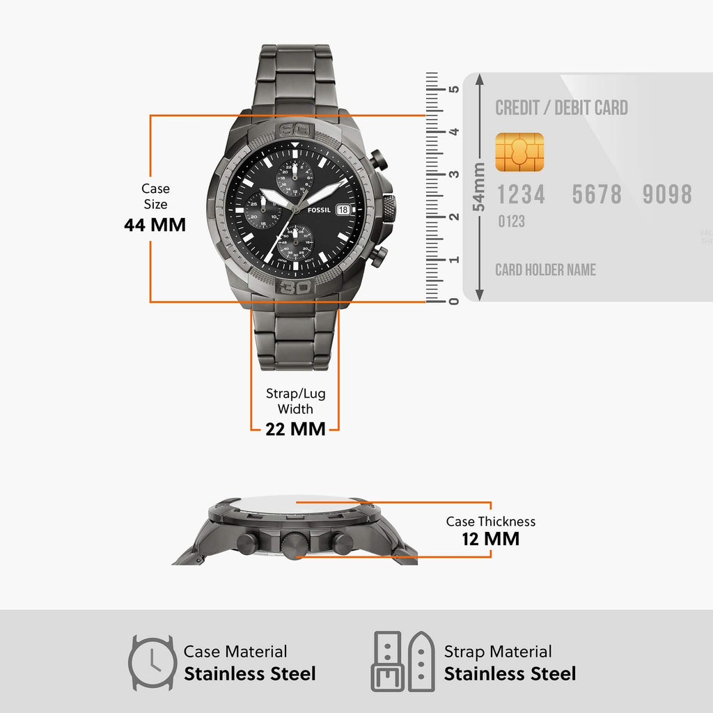 Fossil Bronson Chronograph Black Dial Grey Steel Strap Watch for Men - FS5852