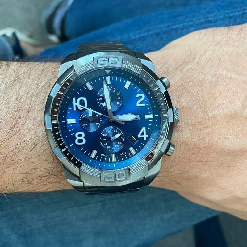 Fossil Bronson Chronograph Blue Dial Grey Steel Strap Watch for Men - FS5711