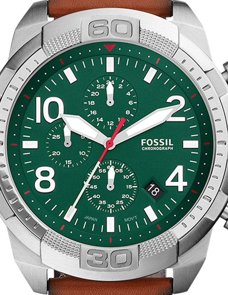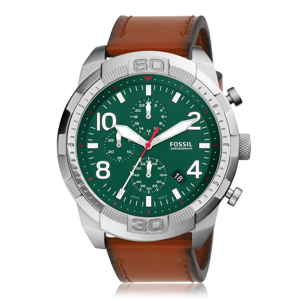 Expertly crafted, the Fossil Bronson Chronograph watch for men boasts a stylish green dial and durable brown leather strap. Stay on time with its impeccable timekeeping, while adding a touch of sophistication to any outfit. Perfect for the modern man seeking both functionality and fashion.
