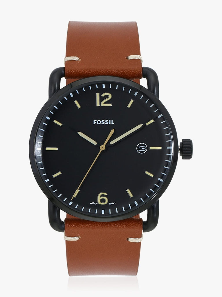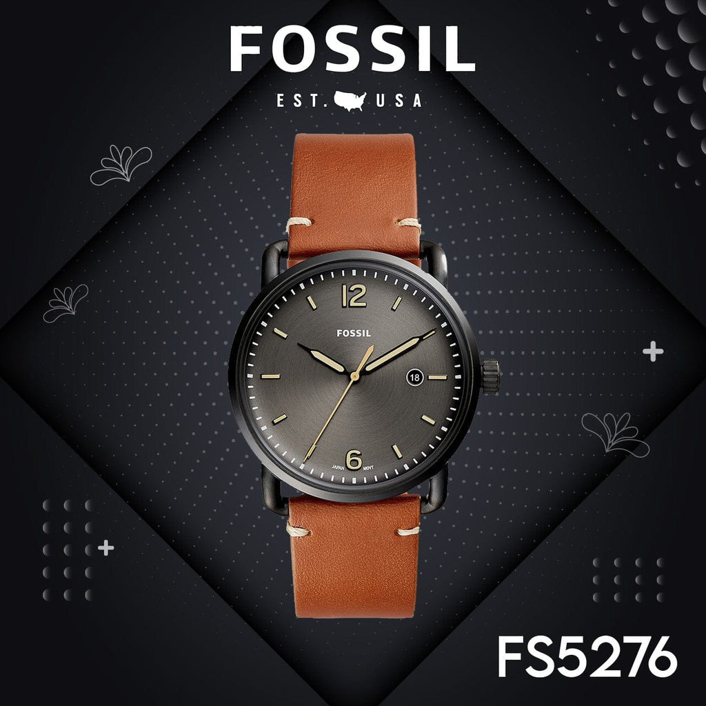 Fossil Commuter Three Hand Date Black Dial Brown Leather Strap Watch for Men - FS5276