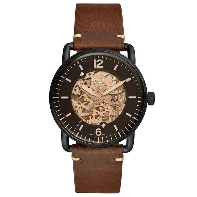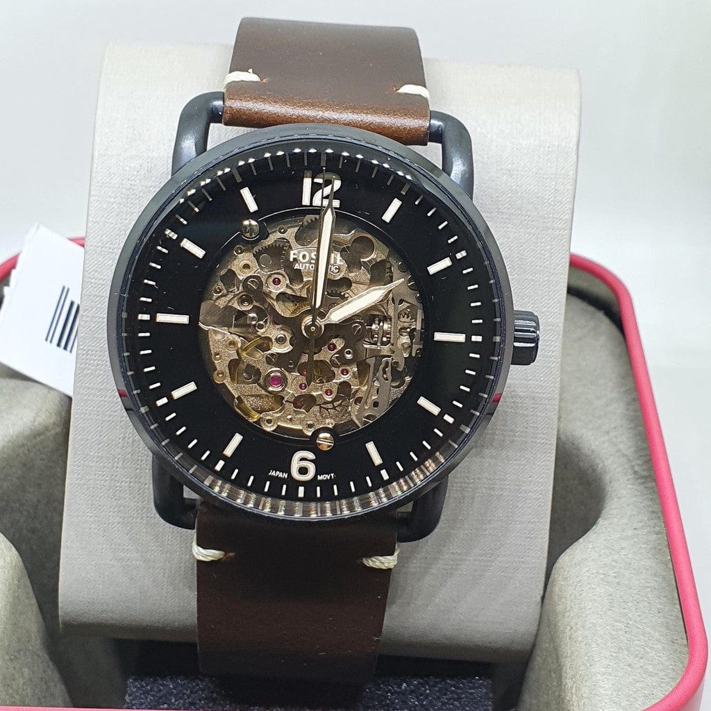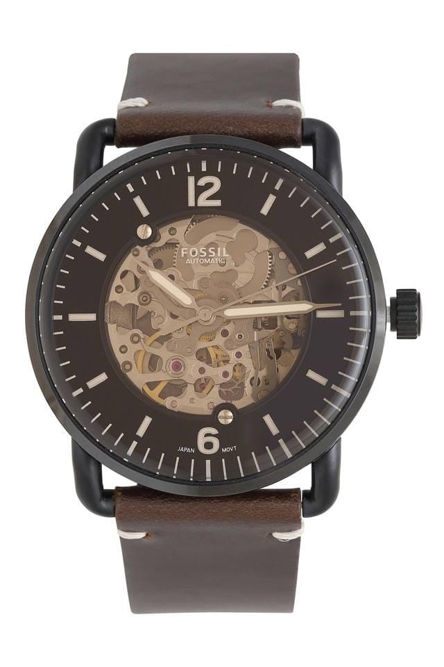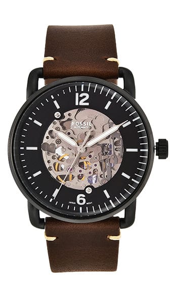 Fossil Commuter Automatic Black Dial Brown Leather Strap Watch for Men - ME3158