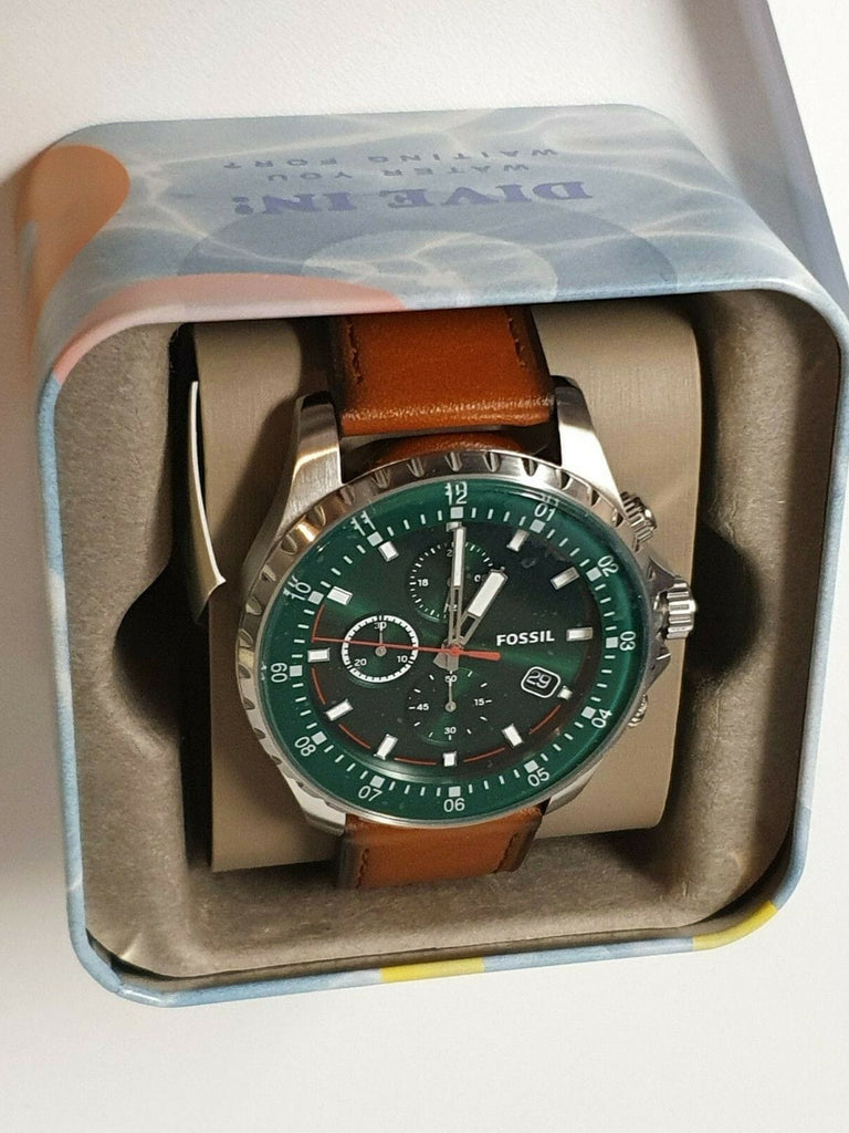 Fossil Dillinger Luggage Chronograph Green Dial Brown Leather Strap Watch for Men - FS5734
