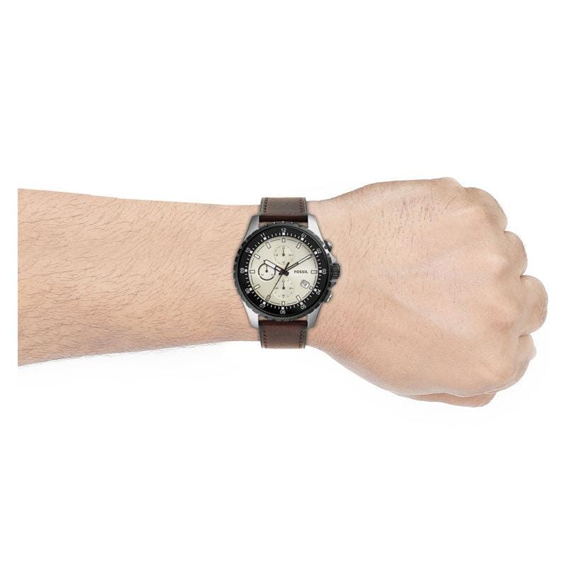 Fossil Dillinger Chronograph White Dial Brown Leather Strap Watch for Men - FS5674