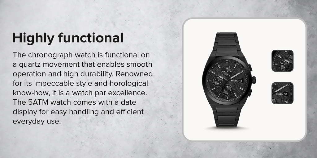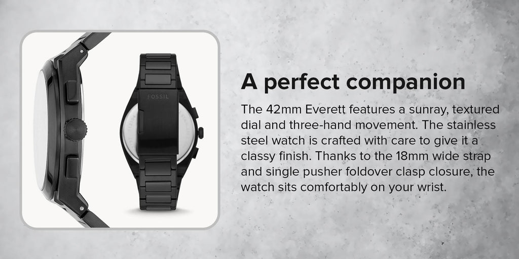 This Fossil Everett Chronograph Black Stainless Steel Watch FS5797 is designed with both style and function in mind. Its sophisticated black stainless steel body and classic dial provides a timeless look, while its chronograph movement offers reliable accuracy for any task. Its durable construction ensures long-term use, making it an excellent choice for your timekeeping needs.