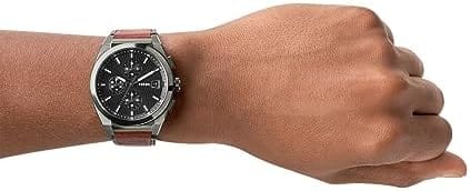 Fossil FS-5799 Everett Leather Band Men Watch. The case is made out of grey stainless steel with a grey bezel, which stands for the high quality of the item, it has a black color dial. This model has got 50 meters of water resistance. it can be worn in scenarios where it is likely to be splashed but not immersed in water and will be fine in rain. The watch is shipped with an original box and a guarantee from the manufacturer.