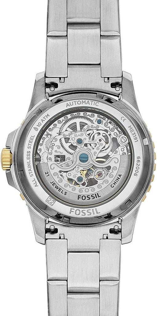 Fossil FB-01 Automatic Skeleton Blue Dial Two Tone Steel Strap Watch for Men - ME3191
