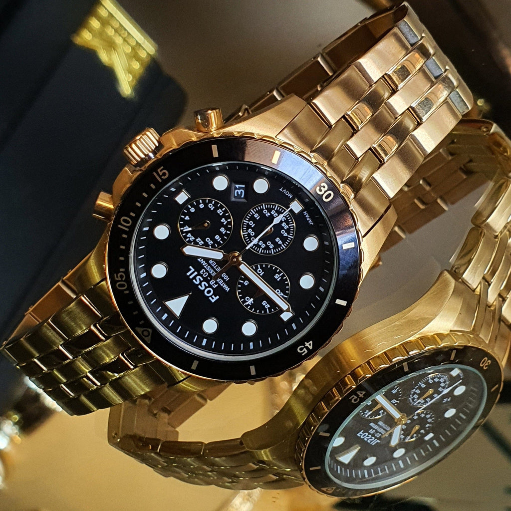 Fossil FB-01 Chronograph Black Dial Gold Steel Strap Watch for Men - FS5836