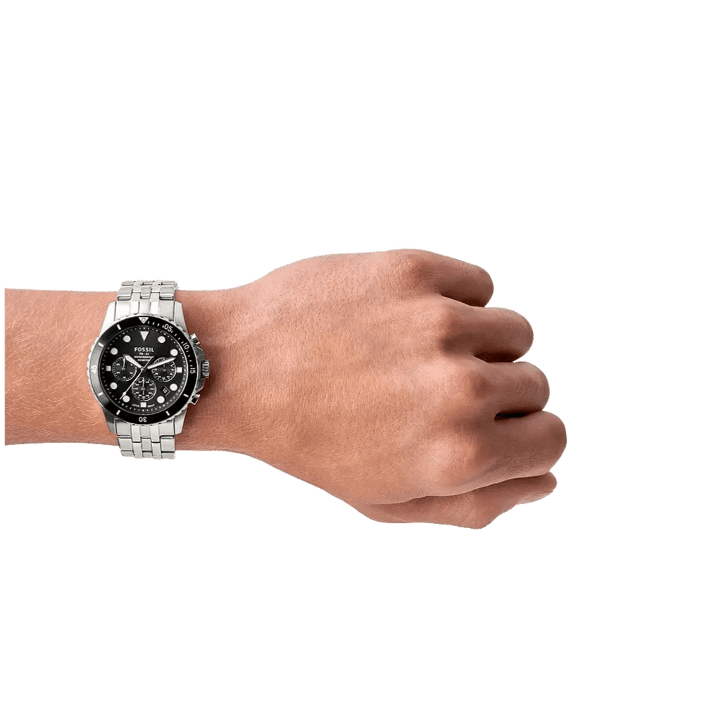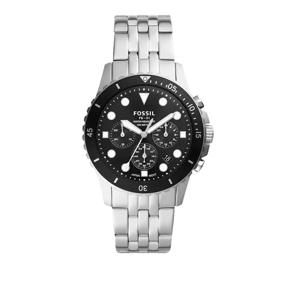 Fossil FB-01 Chronograph Black Dial Silver Steel Strap Watch for Men - FS5837