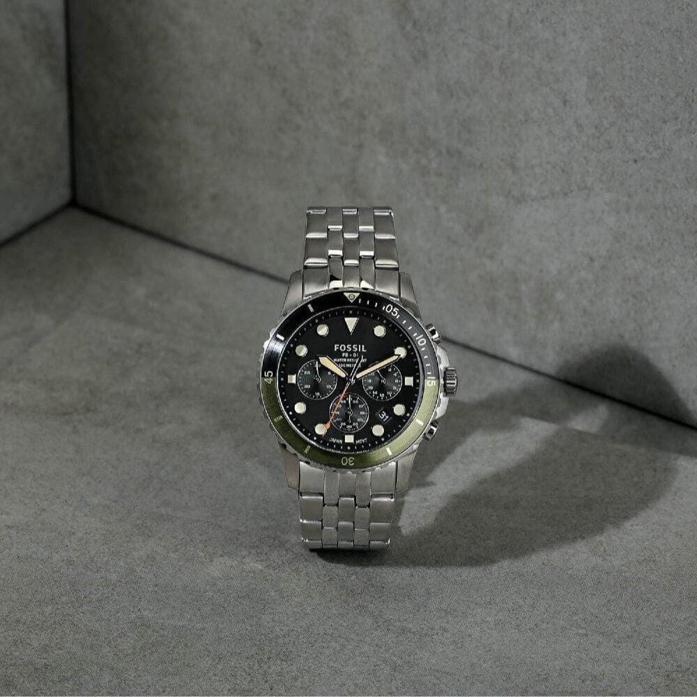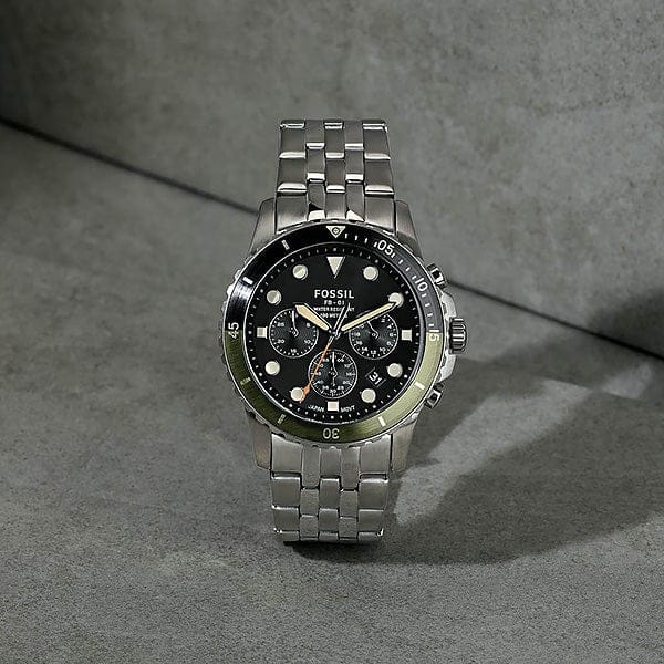 Fossil FB-01 Chronograph Black Dial Silver Steel Strap Watch for Men - FS5864