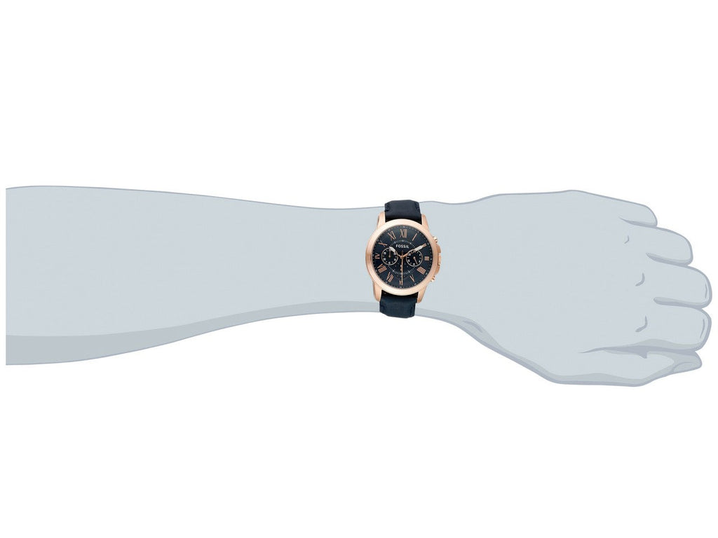 Fossil Grant Chronograph Blue Dial Blue Leather Strap Watch for Men - FS4835