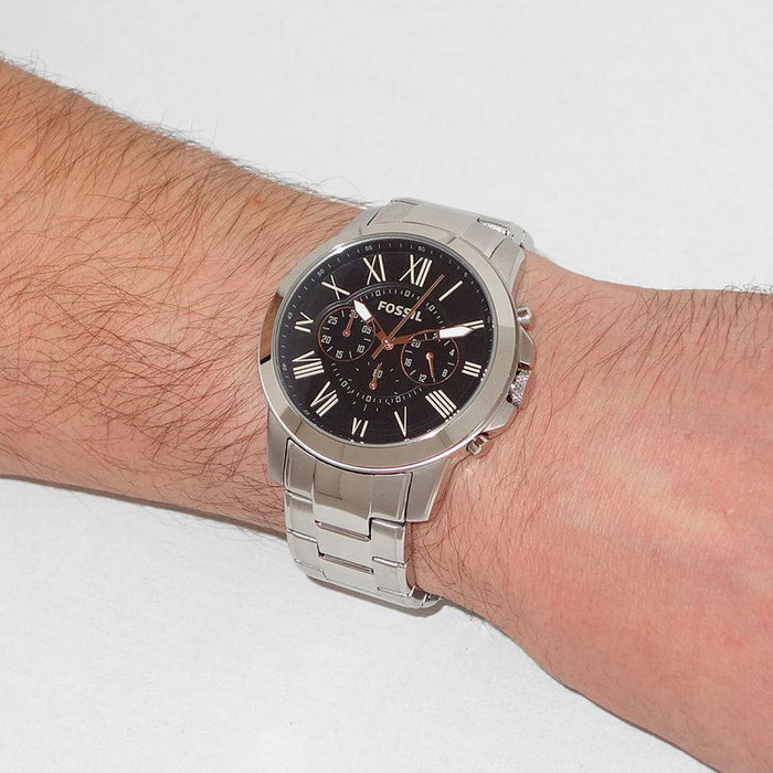 Fossil Grant Chronograph Black Dial Silver Steel Strap Watch for Men - FS4994