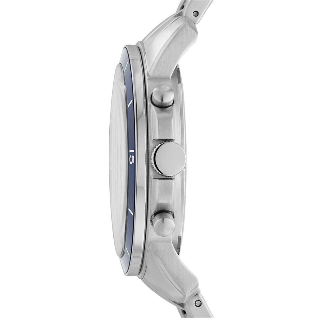 • Silver stainless steel chronograph watch. This watch is compatible with all 22mm straps.