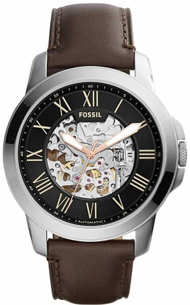 Fossil Grant Automatic Skeleton Black Dial Brown Leather Strap Watch for Men - ME3100