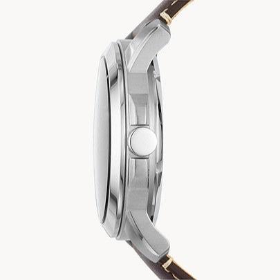 Sleek, self/winding and styled to tick on time with a built/in rotor, our Grant does the work for you. Modeled after vintage clocks, this timeless automatic gets a refresh with a trench/tinted dial finish and genuine dark brown leather strap.