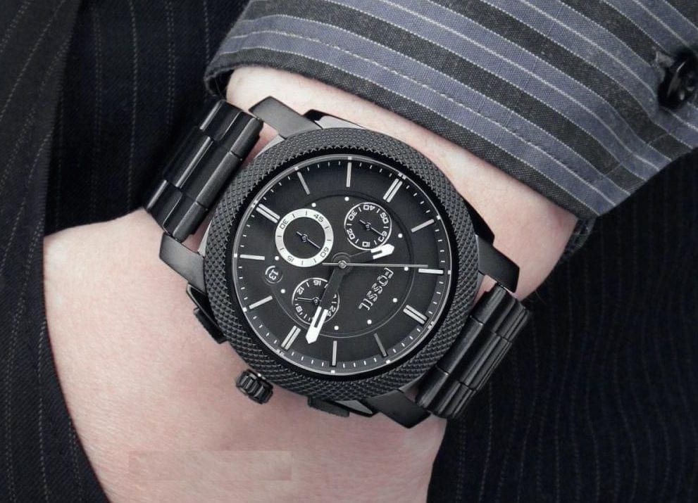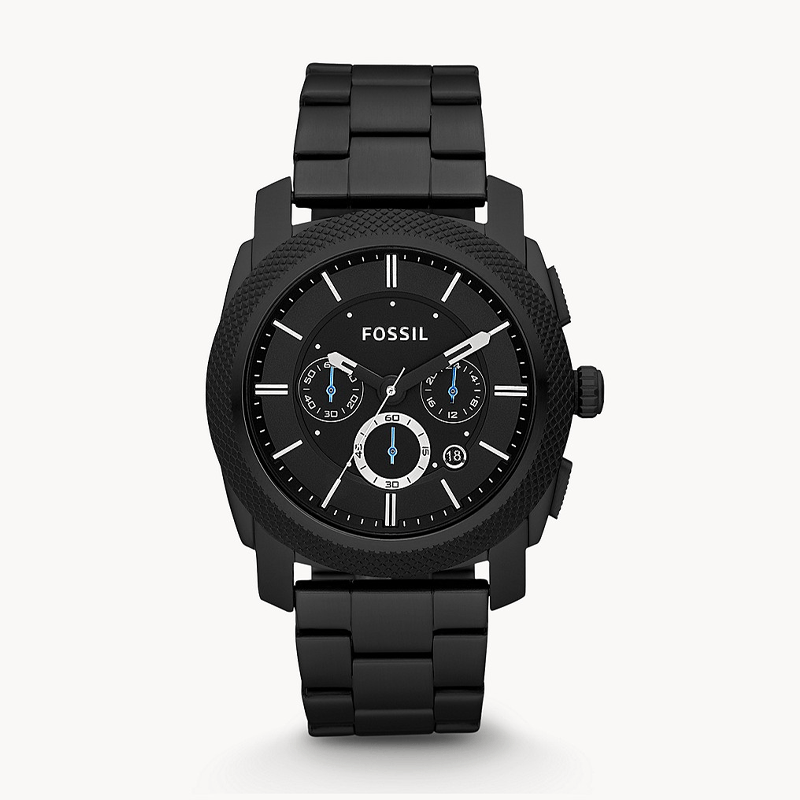 Fossil Machine Chronograph Black Dial Black Steel Strap Watch for Men - FS4552