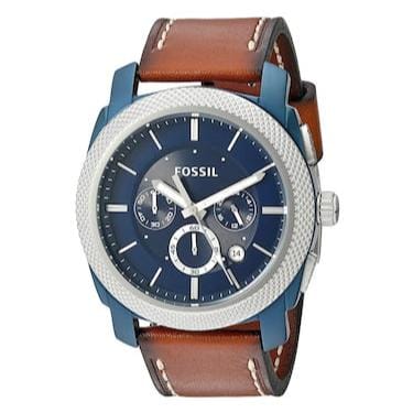 Fossil Machine Chronograph Blue Dial Brown Leather Strap Watch for Men - FS5232