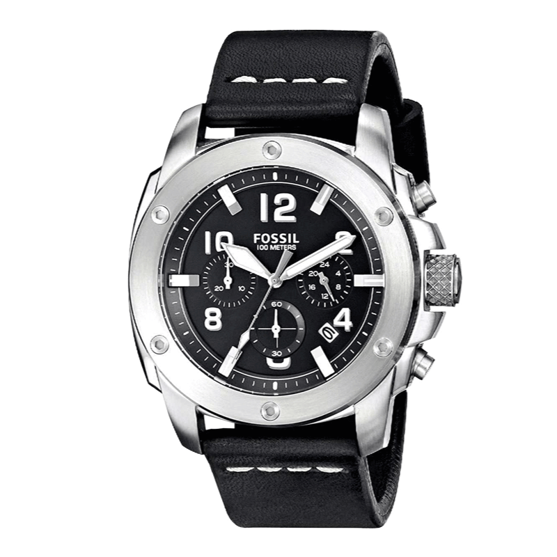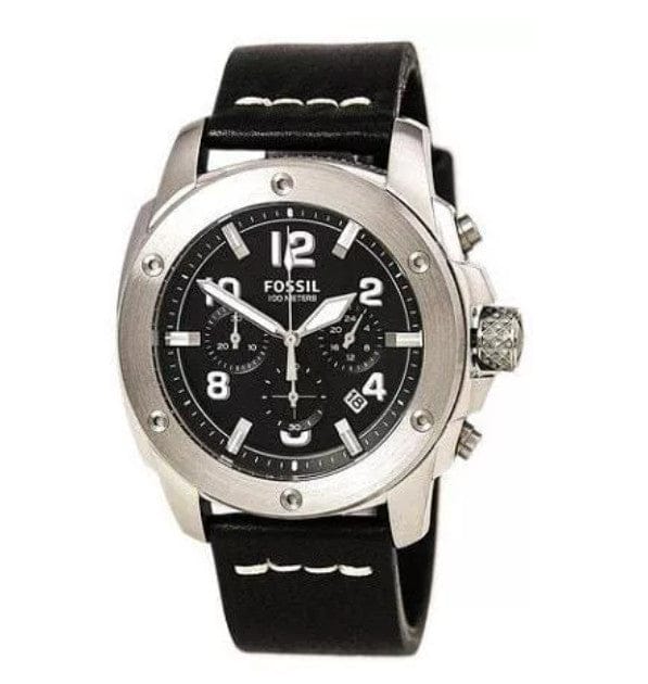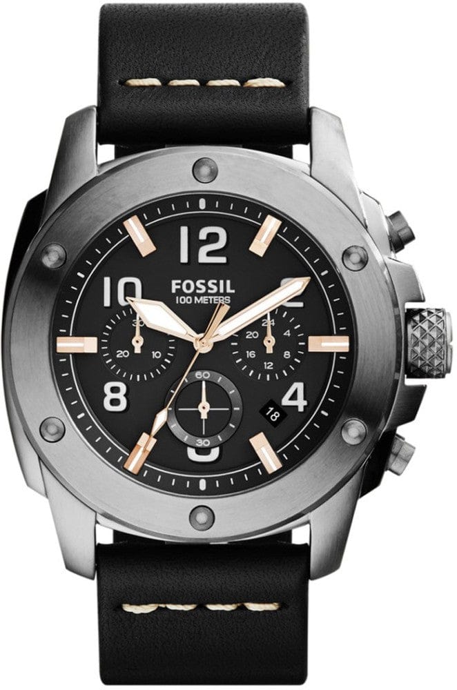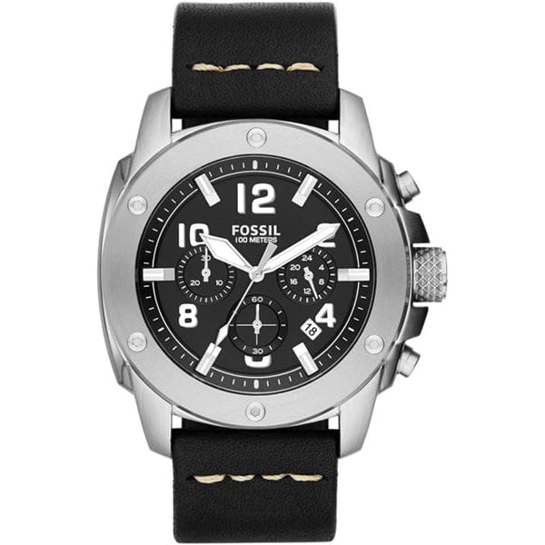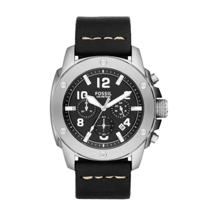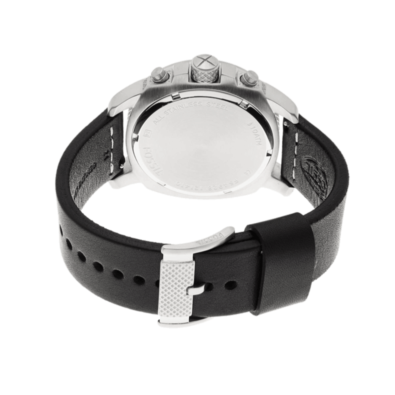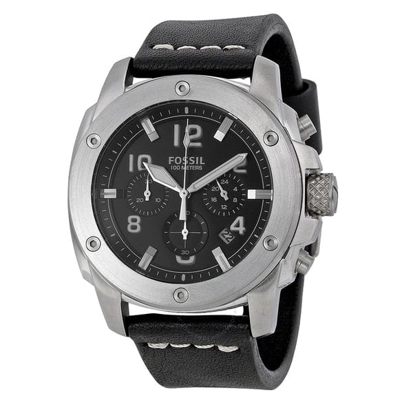 Fossil Modern Machine Chronograph Black Dial Black Leather Strap Watch for Men - FS4928