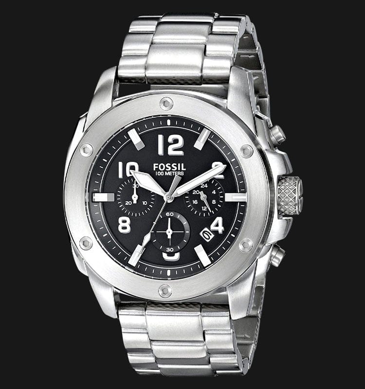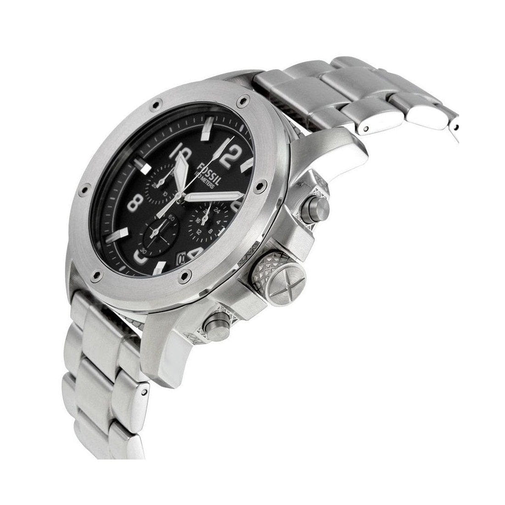 Fossil Modern Machine Black Dial Silver Steel Strap Watch for Men - FS4926