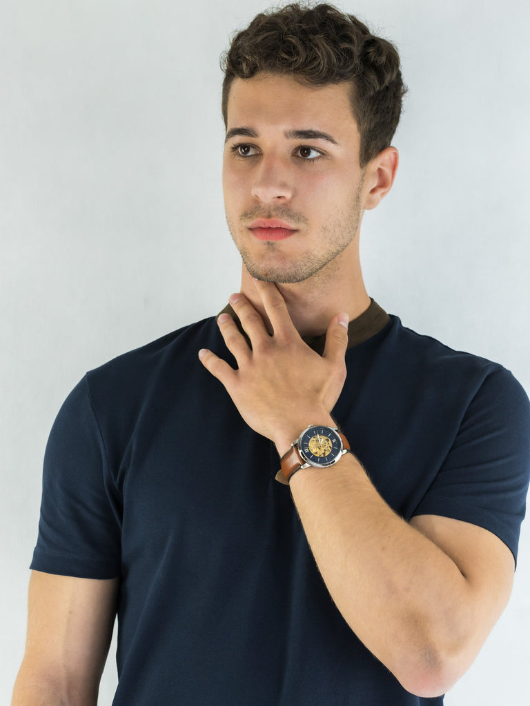 Expertly crafted for the modern man, the Fossil Neutra Automatic Luggage Skeleton Watch boasts a striking blue dial and genuine brown leather strap. With its sleek automatic movement and unique skeleton design, this timepiece provides both style and functionality. Perfect for any occasion, this watch is a must-have for any sophisticated gentleman.