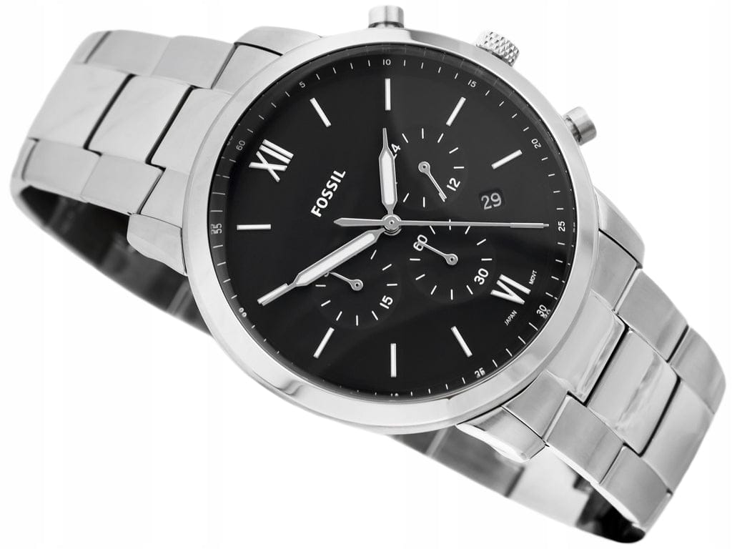 Fossil Neutra Chronograph Black Dial Silver Steel Strap Watch for Men - FS5384