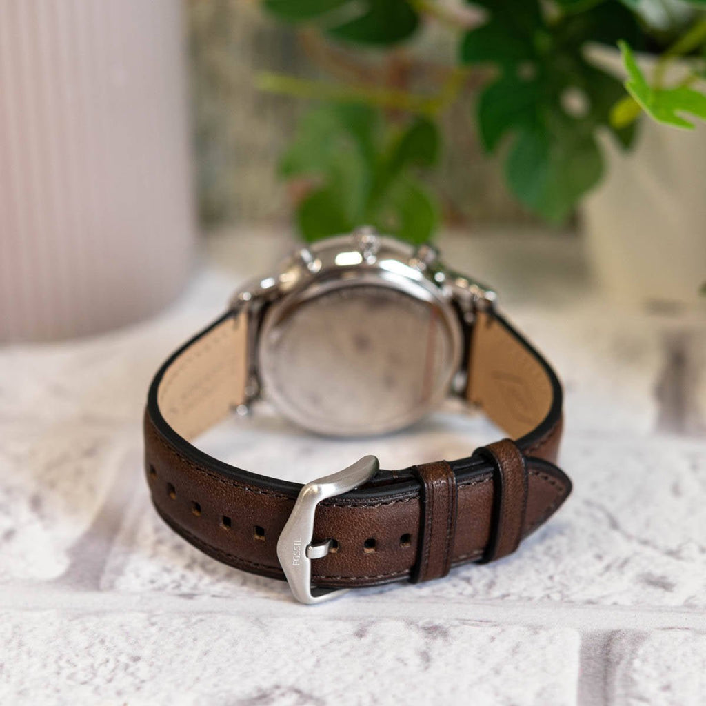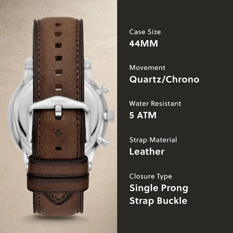 Fossil Neutra Chronograph White Dial Brown Leather Strap Watch for Men - FS6022
