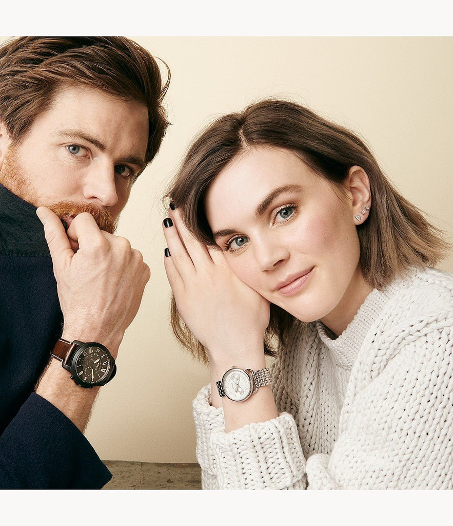 - A Women's Analogue watch from the brand Fossil with a case of Stainless steel.