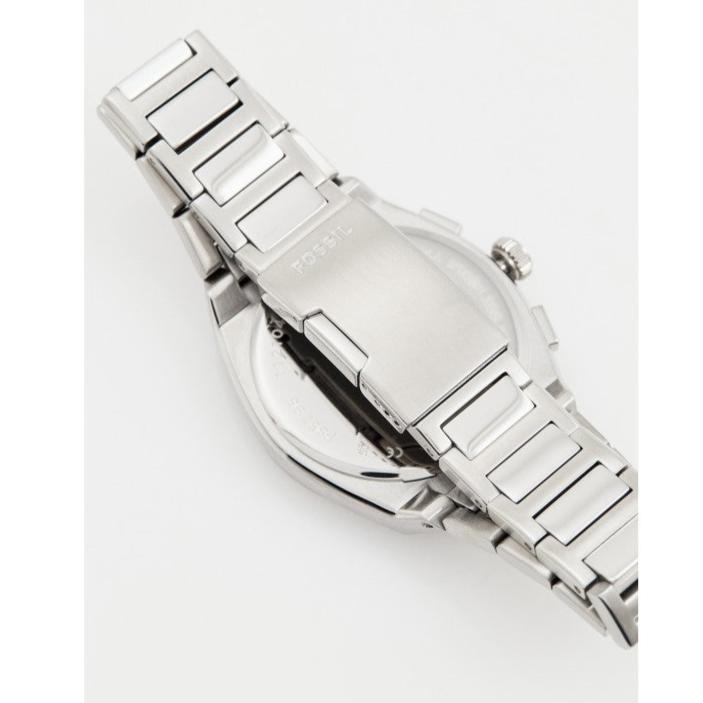 Fossil FS-5795 Chronograph Men Watch. The case is made out of silver stainless steel with a silver bezel, which stands for the high quality of the item, it has a blue color dial. This model has got 50 meters of water resistance. it can be worn in scenarios where it is likely to be splashed but not immersed in water and will be fine in rain. The watch is shipped with an original box and a guarantee from the manufacturer.