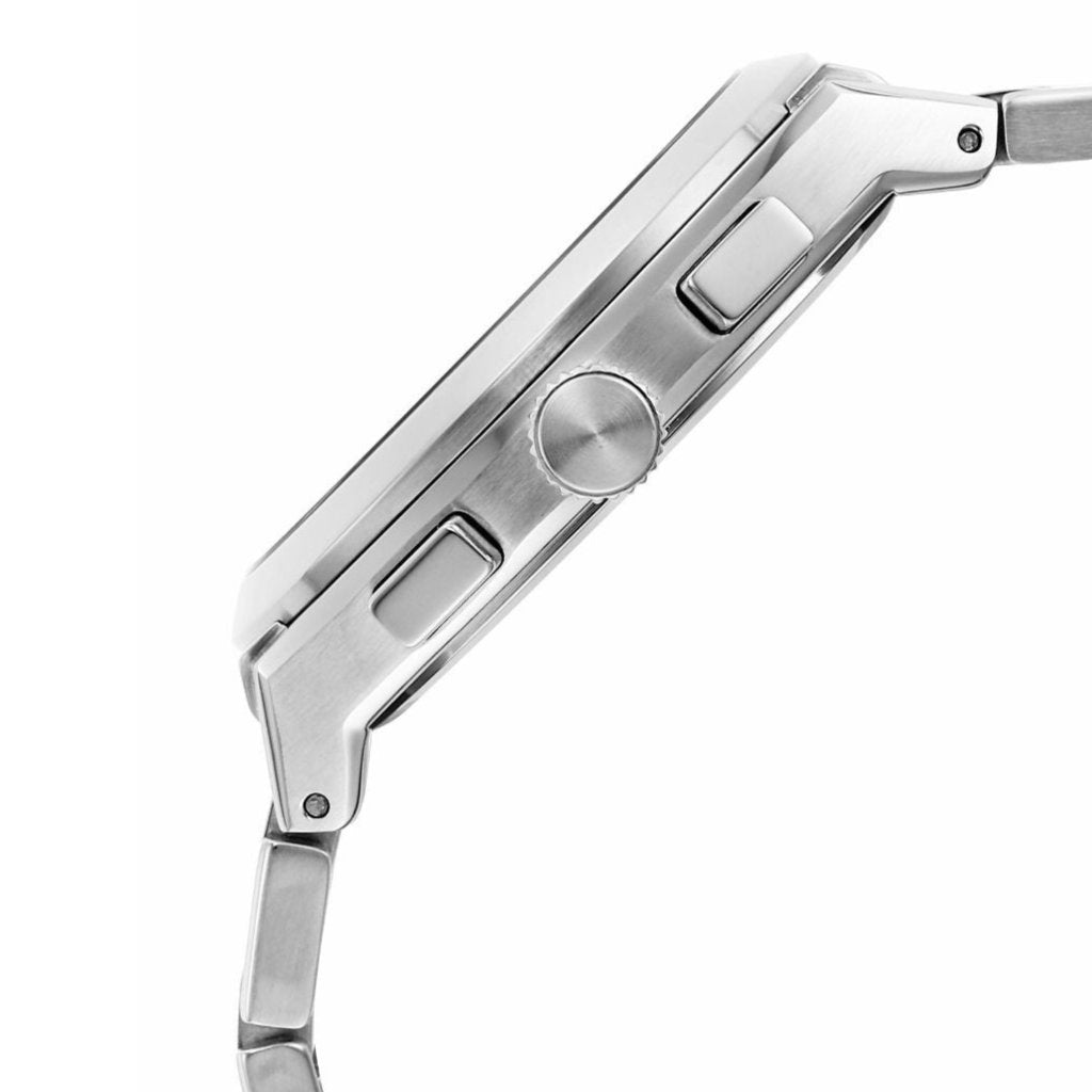 - Case size: 42mm; Band size: 18mm; quartz movement with 3-hand Date chronograph display; mineral crystal face;