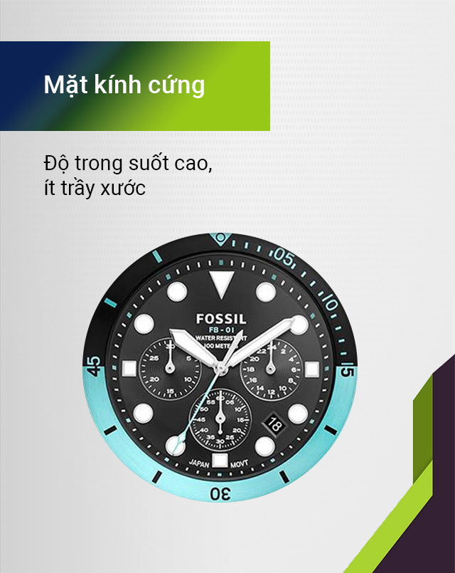 Fossil Fb-01 Chrono FS5827 is an amazing and attractive Gents watch. Case material is Stainless Steel, which stands for a high quality of the item and the Black dial gives the watch that unique look. The features of the watch include (among others) a chronograph. This model has 100 meters water resistance - it is suitable for swimming, but not high impact.