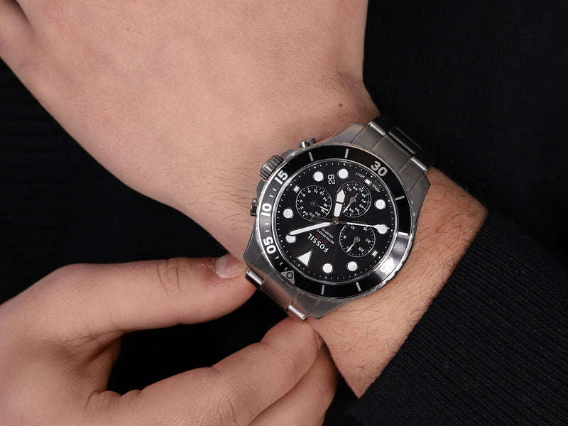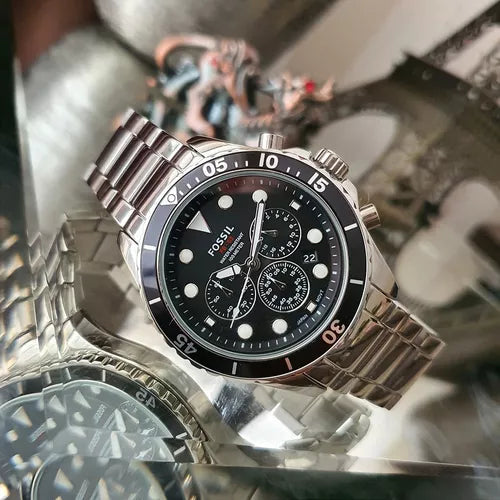 Fossil FB-03 Chronograph Black Dial Silver Steel Strap Watch for Men - FS5725