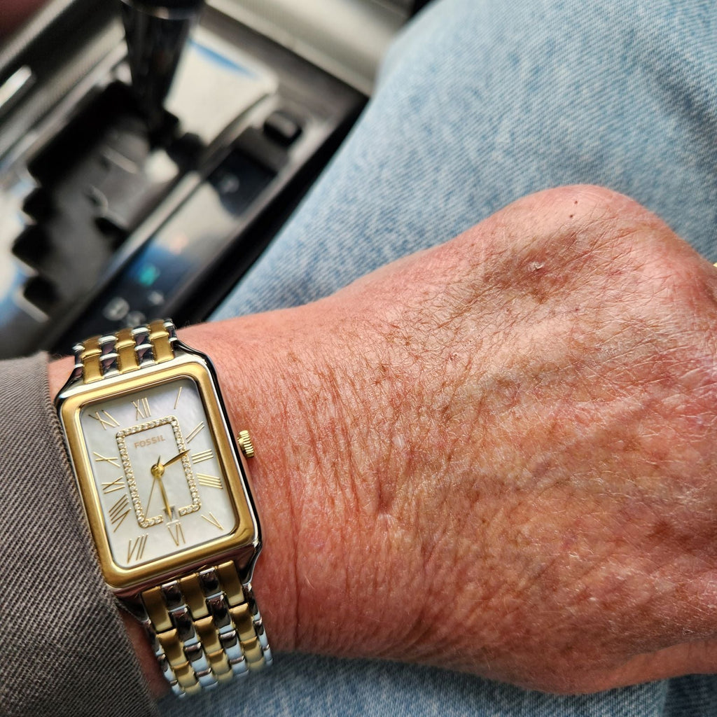 Indulge in timeless luxury with the Fossil Raquel watch. Featuring a chic mother of pearl dial, two tone steel strap, and precise three hand movement, this watch exudes elegance and functionality. Upgrade your style game with this exquisite timepiece.