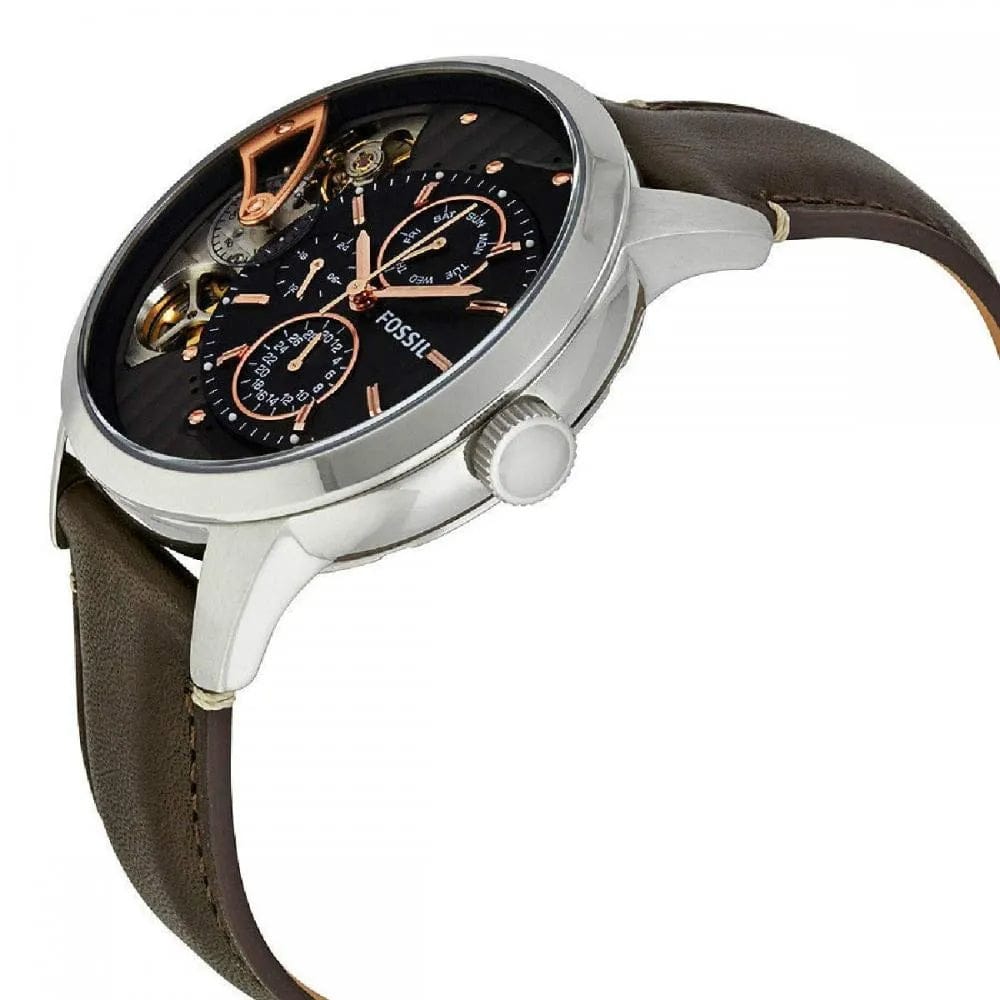 Fossil Townsman Automatic Black Dial Brown Leather Strap Watch for Men -  ME1163