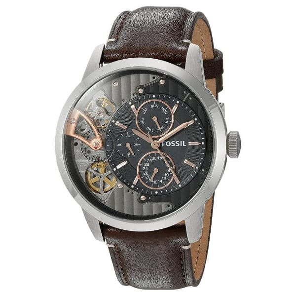 Fossil Townsman Automatic Black Dial Brown Leather Strap Watch for Men - ME1163