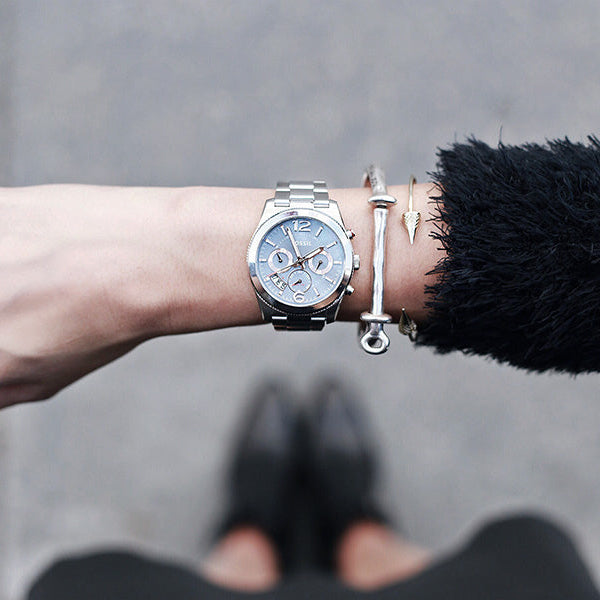 Fossil Perfect Boyfriend Mother of Pearl Blue Dial Silver Steel Strap Watch for Women - ES3880