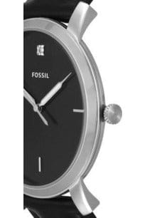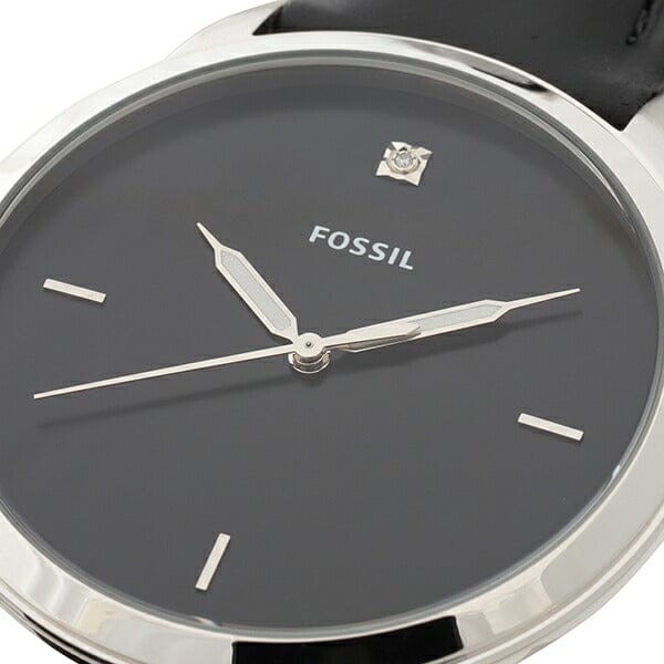 This 44 mm Minimalist features a black satin dial with a genuine diamond at the 12-hour marker, three-hand movement and a black leather strap.