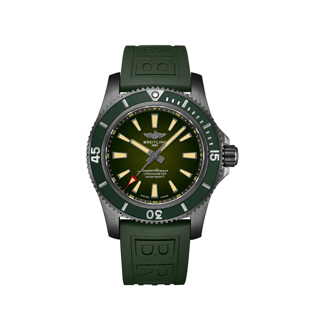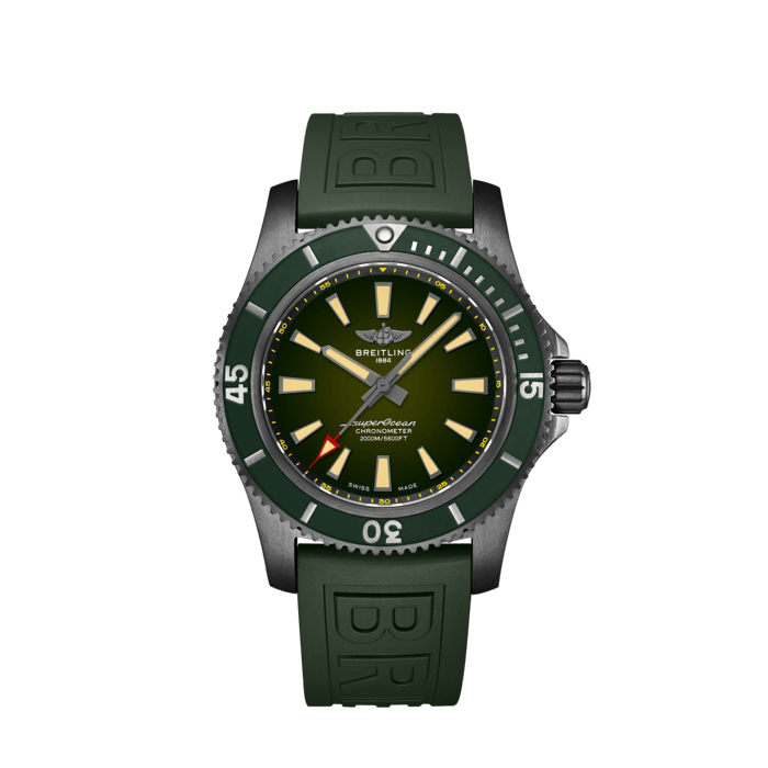 Breitling Superocean Automatic 46 Green Dial Green Rubber Strap Watch for Men - M173681A1L1S1