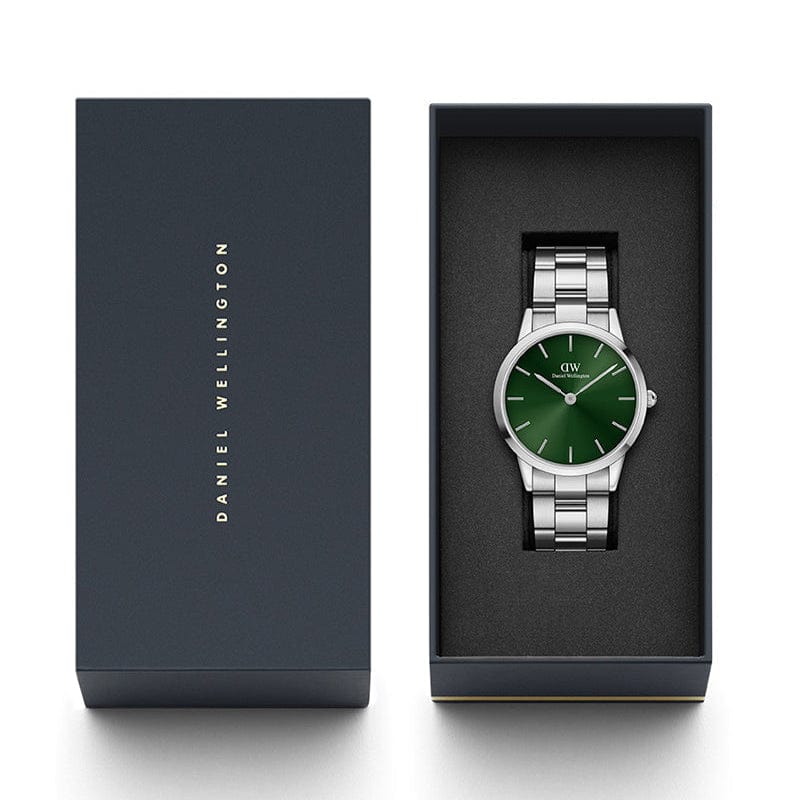 The Daniel Wellington Iconic Link watch for men is a true statement piece. Featuring a stunning emerald green dial and a sleek silver steel strap, this watch will elevate any outfit. With its unique design and reliable functionality, this watch is a must-have for any stylish gentleman. Own a piece of elegance with the DW00100427 model.