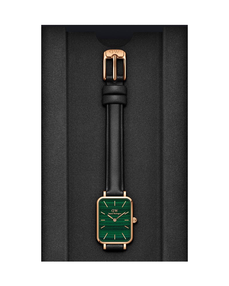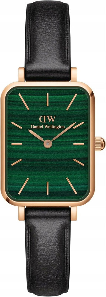 Daniel Wellington Quadro Pressed Sheffield Green Dial Black Leather Strap Watch For Women - DW00100439