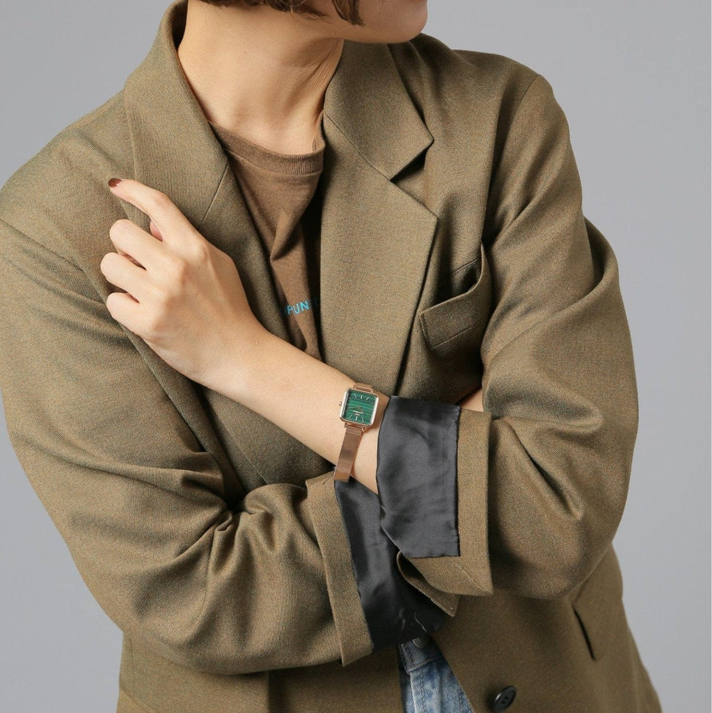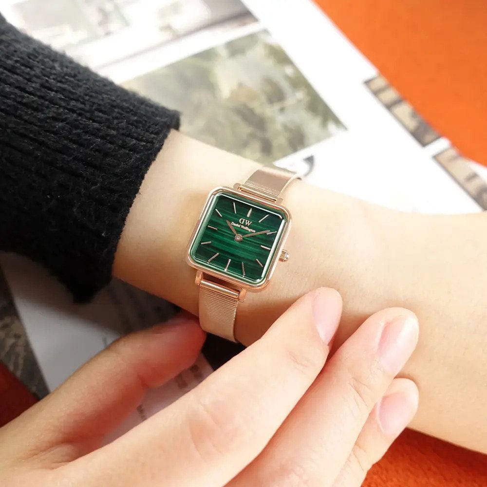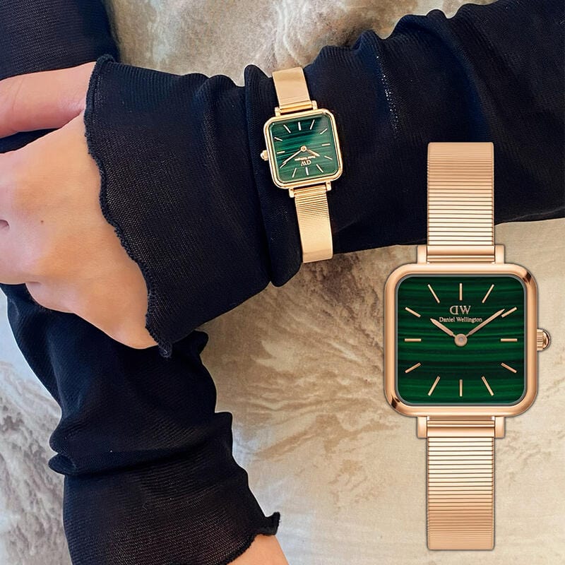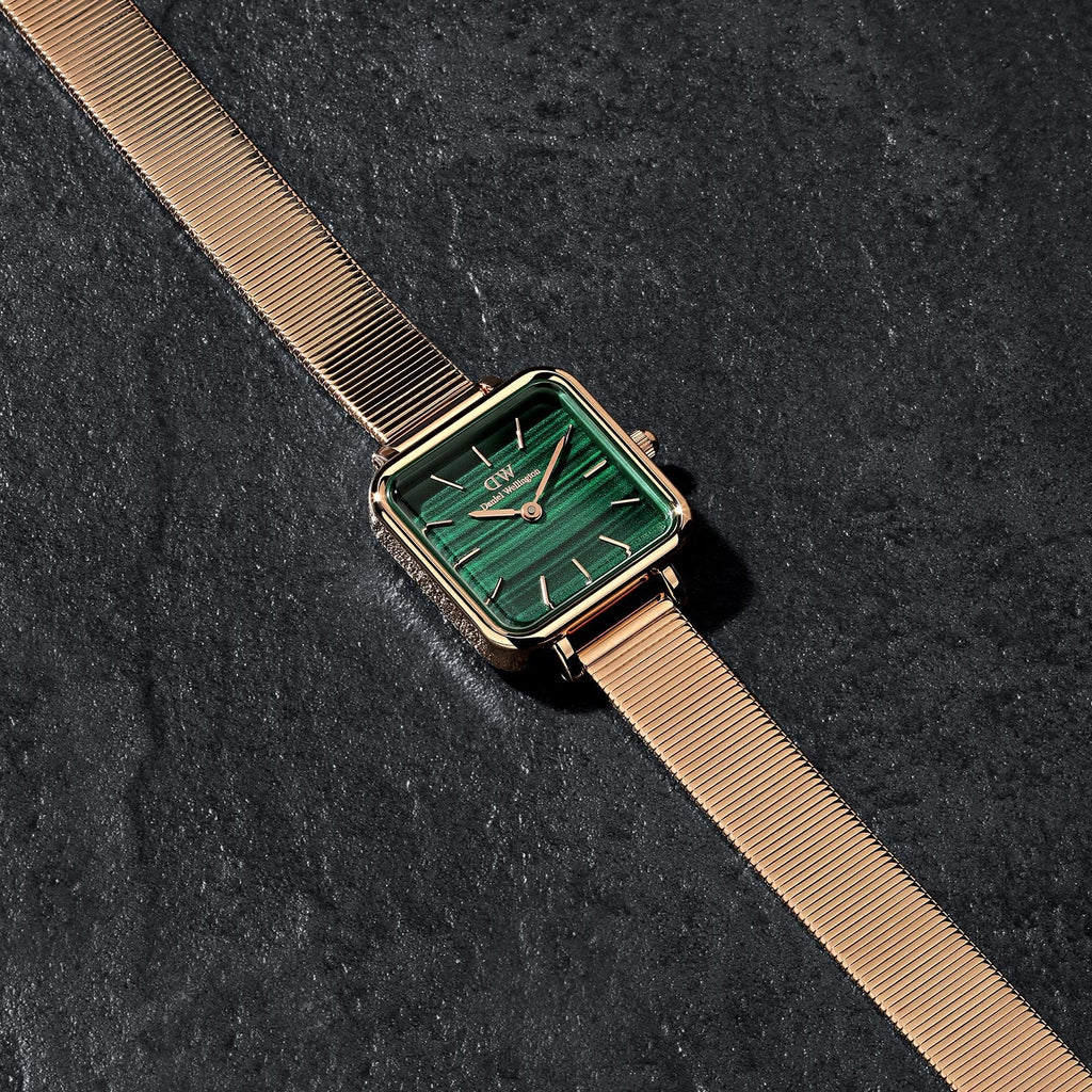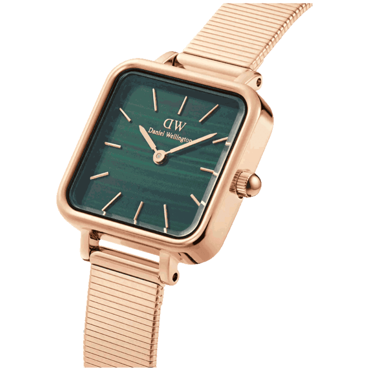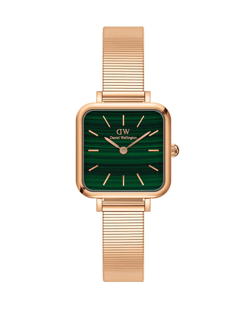 Daniel Wellington Quadro Studio Green Dial Rose Gold Mesh Strap Watch For Women - DW00100520