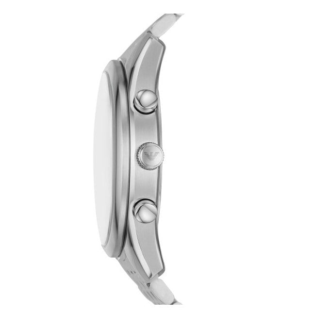 The Emporio Armani Antonio Chronograph brings sophisticated Italian design to your wrist. This striking timepiece features a captivating green dial that commands attention while maintaining understated elegance. The precision chronograph function lets you track time with accuracy, perfect for the modern man who values both style and substance. Crafted with a polished silver steel strap and case, it delivers durability without compromising on refined aesthetics. Whether you're in the boardroom or at a social gathering, this watch elevates any outfit with its contemporary charm and reliable performance.