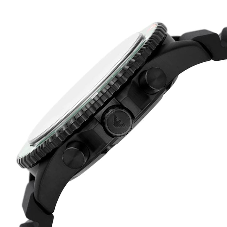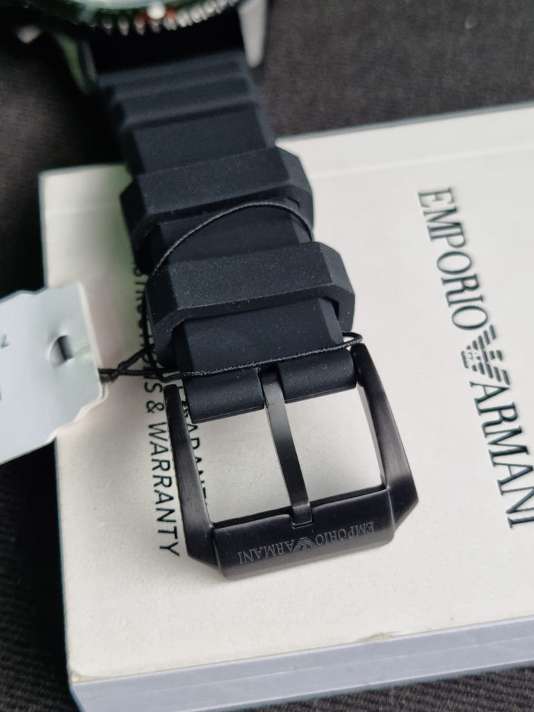 Emporio Armani Diver Chronograph Quartz Green Dial Black Silicon Strap Watch For Men - AR11463