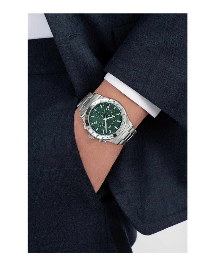 Salvatore Ferragamo 1927 Chrono Green Dial Silver Steel Strap Watch for Men - SFKZ00423