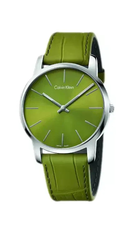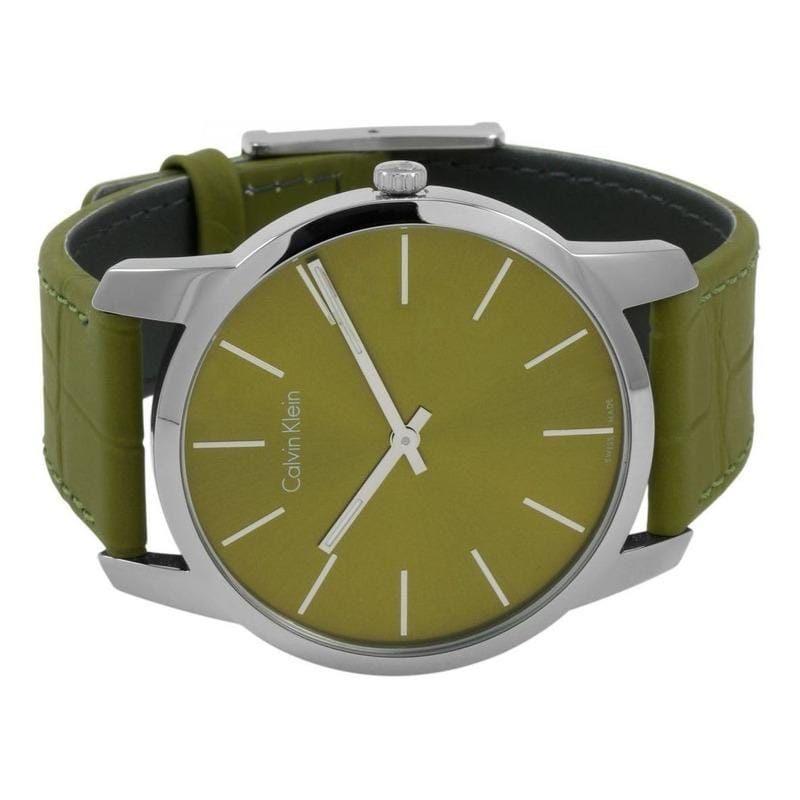 Calvin Klein City Green Dial Green Leather Strap Watch for Men - K2G211WL