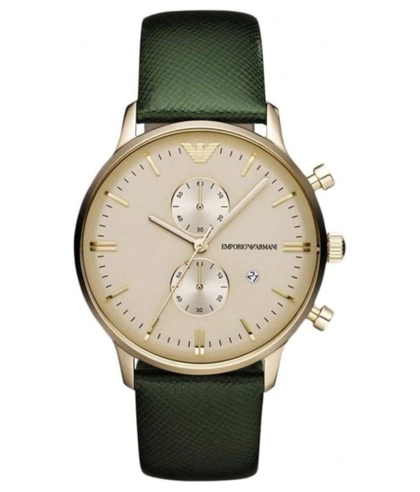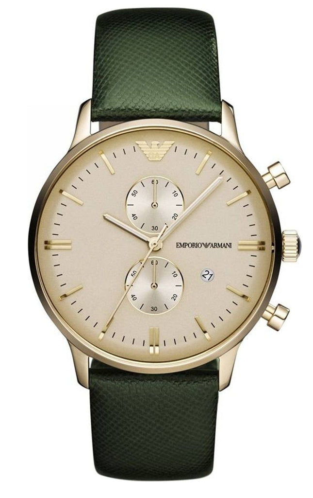 Emporio Armani Chronograph Champagne Dial Green Leather Strap Watch For Men - AR1722