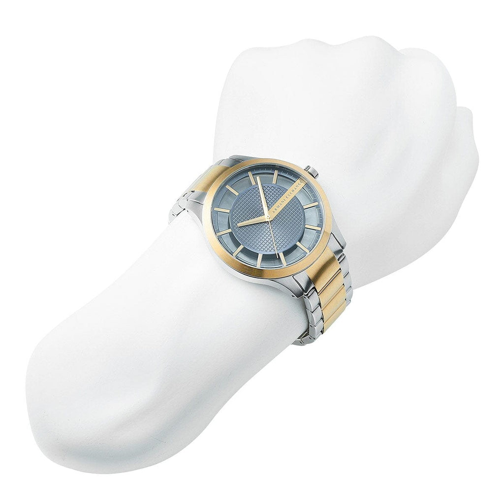 Introducing the stylish and functional Armani Exchange Hampton Two Tone Grey Dial Men's Watch. With its sleek design and top-quality materials, this watch is the perfect accessory for any man. Stay on time and in style with its precise timekeeping and durable construction.