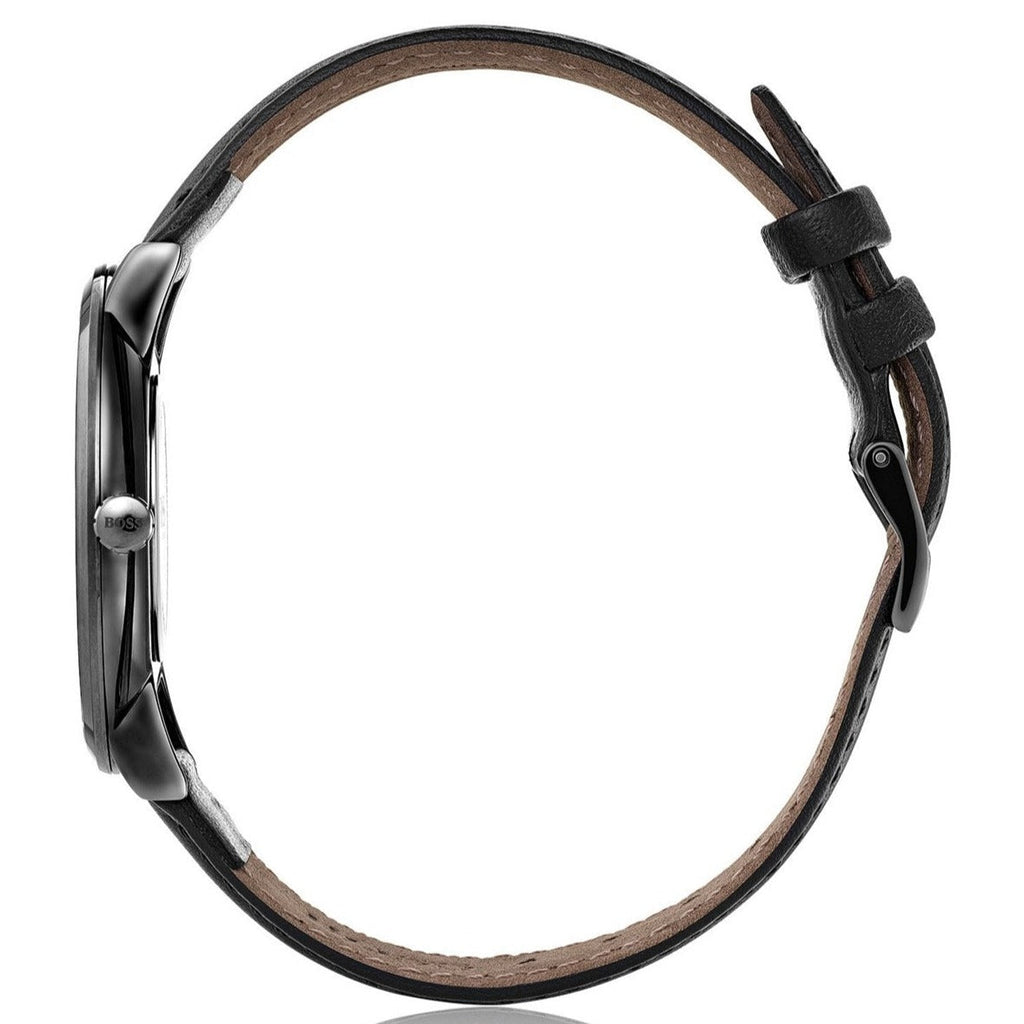 Hugo Boss Modern Grey Dial Black Leather Strap Watch for Men - 1513540
