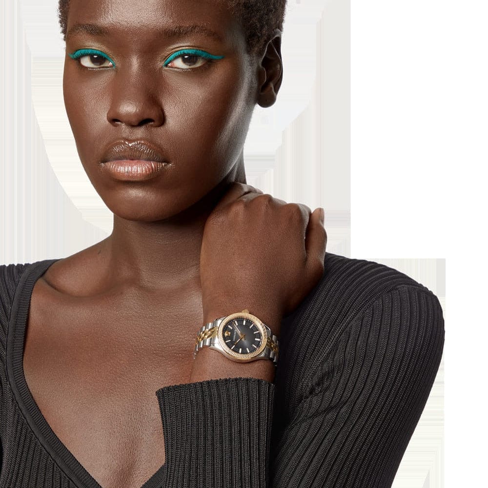 Hellenyium is for the Versace woman who wants to feel elegant and timeless chic. Its look recalls the iconic symbols of the brand such as the Greca engraved on the top ring and the medusa 2D at 12th-hour. The strap proposal is sporty urban while the band confers a look for every day and evening occasion.