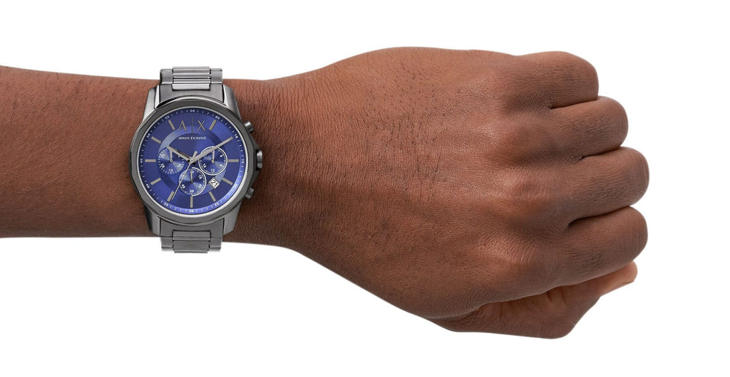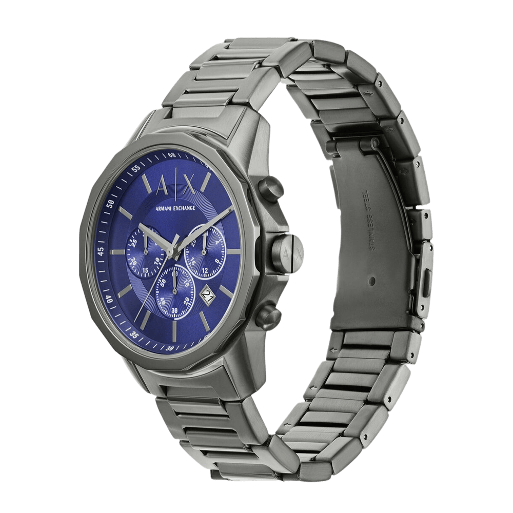 Armani Exchange Banks Chronograph Blue Dial Grey Steel Strap Watch For Men - AX1731