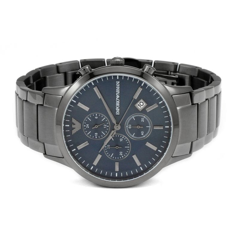 Emporio Armani Renato Chronograph Blue Dial Grey Steel Strap Watch For Men - A11215